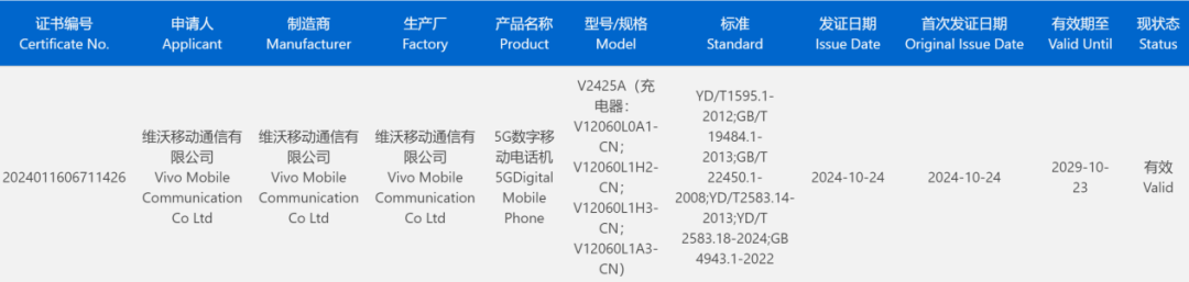 日前,型號為V2425A、V2426A的vivo新機通過了3C質量認證。