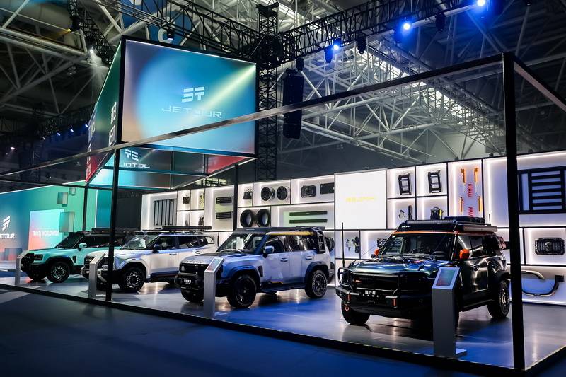 本次大會期間,捷途JMK官方改裝車的集體亮相無疑是一大亮點。捷途和平精英戰神版、旅行者黑武士、旅行者羽林騎兵、山海T1公路騎士等豐富的改裝車型,向世界展示來自中國的潮流改裝文化。