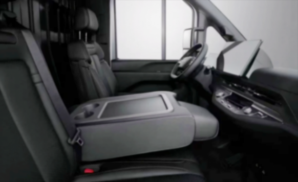 內飾是乘用化的設計風格,中控臺的上部區域帶有兩個很大的敞開式儲物格,使用了懸浮式的儀表盤和中控大屏,兩幅式的方向盤帶有多功能按鍵。