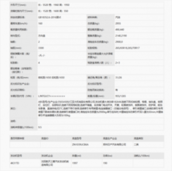 動力配置部分,此次申報的新車提供了汽油和柴油兩種動力,汽油版搭載的是沈陽航天三菱型號為4K31TD的2.0T發動機,最大功率190千瓦。柴油版搭載的是來自東風的型號為M9T-500的2.3T柴油發動機,最大功率140千瓦,油耗申報值為7.7-7.9升/100公里。