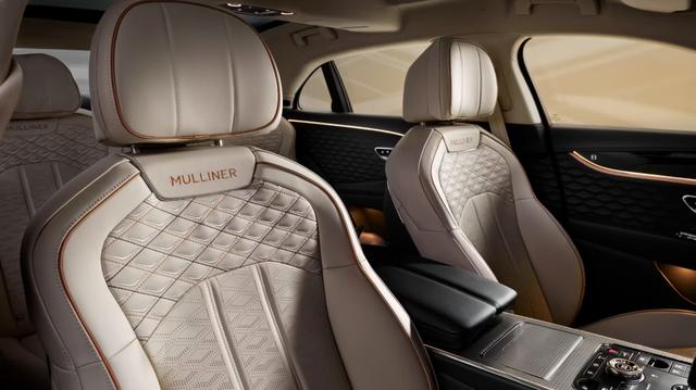 車內方面,賓利飛馳MULLINER將會配備賓利雙翼徽標動效迎賓燈,另外還有MULLINER刺繡手工縫制的皮革。中控臺和門板四周也都加入了鱗片狀的浮雕,更顯高級。亮黑色鋼琴烤漆裝飾面板和銀色金屬材質的交替混搭,再加上保留下來的大顆粒按鍵,將英倫古典奢華與現代工藝完美融合。科技感方面,該車配備了全液晶儀表、可翻折的12.3英寸的觸控液晶屏,功能上支持Carplay、語音識別控制、車聯網。配置方面,無鑰匙進入/啟動、一鍵啟動、魔術車身控制系統、氛圍燈、車內香氛裝置、制冷/制熱杯架、四區空調、后排信息娛樂系統、Naim for Bentley音響系統,冷藏柜、后排電動小桌板、內飾氛圍照明系統、無線充電應有盡有。