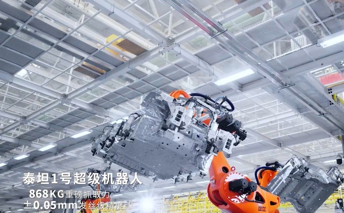 大家肉眼看不到的,是享界S9車身的精密性,工廠采用了潛艇級材質和航母甲板級安全密封水準,通過微米級的嚴苛把控,確保車身的每個細節做到精確。車身鏈接環節中使用的泰坦1號超級機器人具備1000KG的抓取力和±0.06mm的發絲級精度,確保了車身結構的堅固性和安全性;而2000Mpa熱成型鋼和超過80%的鋼鋁混合架構的應用,則構建了720度防碰撞籠式車身,為享界用戶提供全面的安全保護。