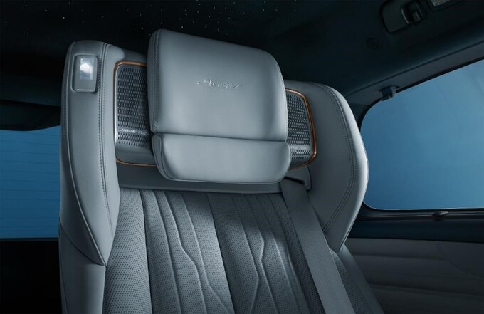 在四座私享版車型中,豪華智慧幕墻系統是一大亮點。它集成了32吋可升降智能屏,僅需一鍵輕啟,標志性的智能大屏就完全升起,將后排座艙升級為奢華與靜謐兼備的“私享空間”。該幕墻系統不僅支持多模式智能投屏,還集成了8吋時鐘顯示屏、Bose音響、13L禮賓冰箱、彈出式大容量儲物箱、擴香盒等豪華科技配置,營造出沉浸式的人文智能空間。