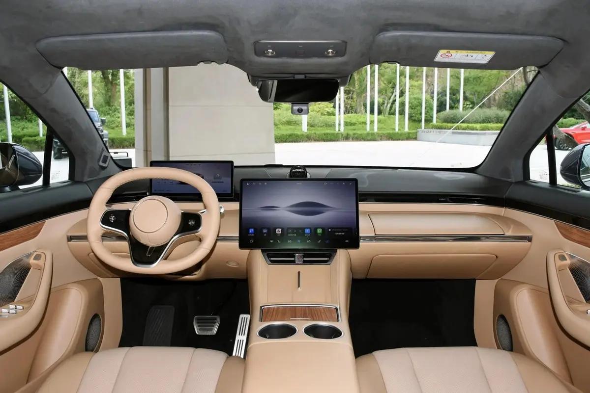 智界R7的內飾布局對稱,配置三幅式方向盤,中控屏為15.6英寸,液晶儀表盤為12.3英寸,儀表位置設計以減少光線干擾。全系車輛標配座椅通風、加熱和按摩功能,副駕駛座椅具備零重力設計,支持18向調節,帶有加熱腿托。車內還配備電動遮陽簾、雙層隔音玻璃及后排隱私玻璃,以提升隔音效果。
