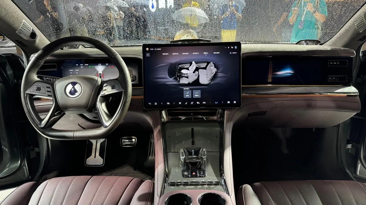 內飾方面,Z9GT設計強調科技感和舒適性。中控區域有一塊大尺寸懸浮式中控屏,兩側為對稱的全液晶儀表盤和副駕駛娛樂屏幕,乘客和駕駛員可以通過這些屏幕操作多種功能和查看信息。前后排座椅均支持電動調節,加熱、通風和10點式按摩功能,提供舒適乘坐體驗,副駕駛座椅采用零重力設計,提供長途駕駛的額外舒適度。