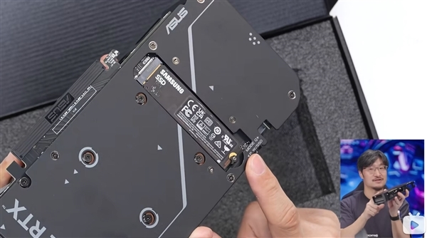 其實早在去年底,華碩就宣布了全球首款集成M.2 SSD插槽的游戲顯卡“Dual RTX 4060 Ti SSD”,在背部金屬擋板上開了一個開孔,最大好處就是可以利用顯卡的散熱器,降低SSD的溫度。