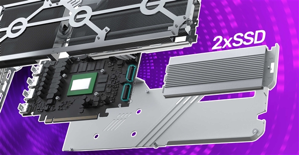 12月6日消息,銘瑄首次加入了Intel銳炫顯卡陣營,首發兩款銳炫B580,一個是三風扇的iCraft 12G,一個是雙風扇的Milestone 12G,同時還在設計一款非常特殊的,自帶兩個M.2 SSD插槽!
