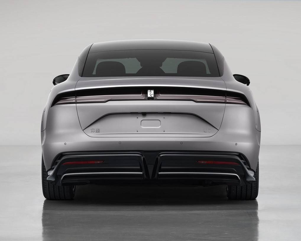 再看車尾,新車采用了整體感比較強的貫穿式尾燈,中間設計有仰望品牌LOGO,辨識度較高;牌照框設計在了尾門處,視覺重心比較高,下包圍采用亮黑色設計,線條平直修長,比較動感。車身尺寸方面,新車長寬高分別為5360×2000×1515mm,軸距3200mm。