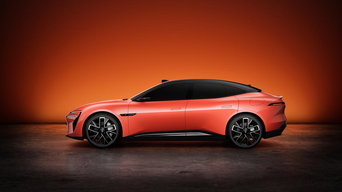 車身側面,輪廓飽滿,線條靈動流暢,結合樣式別致的大尺寸五輻運動輪轂,運動氛圍拉滿。同時,該車還采用了星弧式懸浮車頂、雙拼色車身、隱藏式門把手等彰顯科技感的配置,使車輛看起來更富動感。尺寸方面,長寬高分別為 4855/1960/1450(1467)毫米,軸距為 2940毫米。
