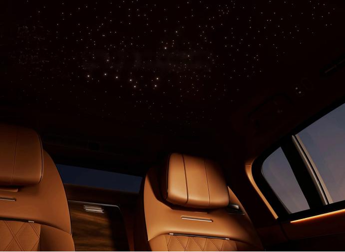目前公布的內飾信息不是很多。根據此前消息,車內中控屏和副駕娛樂屏采用聯屏設計,并使用懷擋式換擋。后排將采用兩個獨立的座椅,中間通過寬大的扶手隔開。配備星空頂,讓汽車頂棚能夠展現出繁星與流動頂燈的效果。