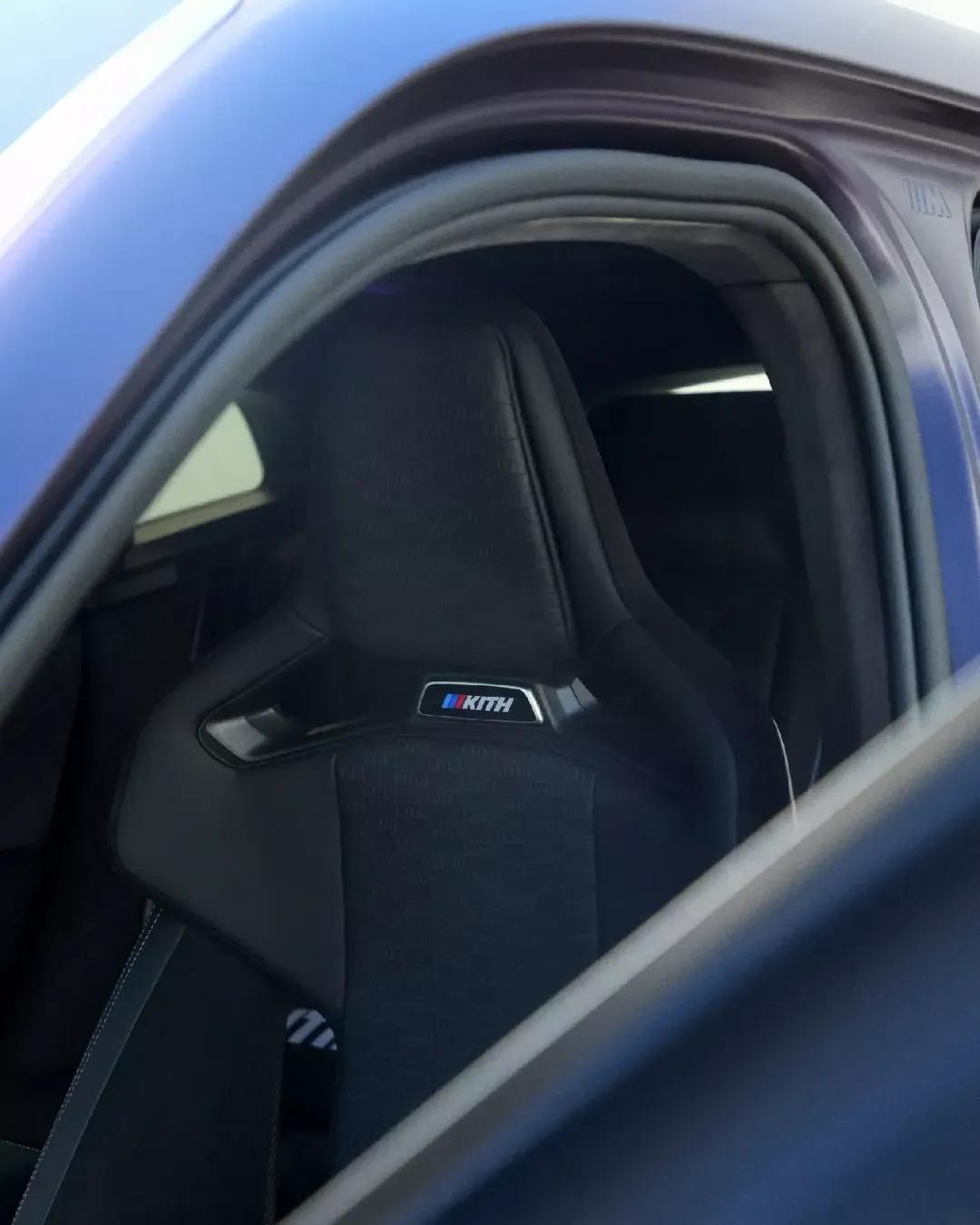 得益于帶KITH字母浮雕圖案的寶馬個性化美利奴真皮座椅,內飾得到了微妙地改造,并且還有天鵝絨腳墊,KITH標志和帶有“1/47”徽章的發光門檻條,亮點包括兩個后座靠墊,紫色內飾照明和一個特殊的KITH旅行袋。