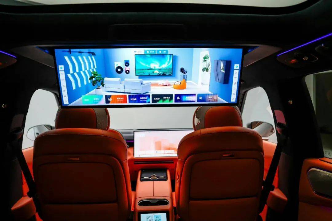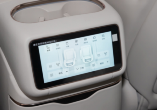 第二排凸顯一個(gè)大“大冰箱、大彩電、大沙發(fā)”,30英寸6K懸浮式娛樂屏,不僅能娛樂,更能與前排互動(dòng),可實(shí)現(xiàn)無縫連接。
