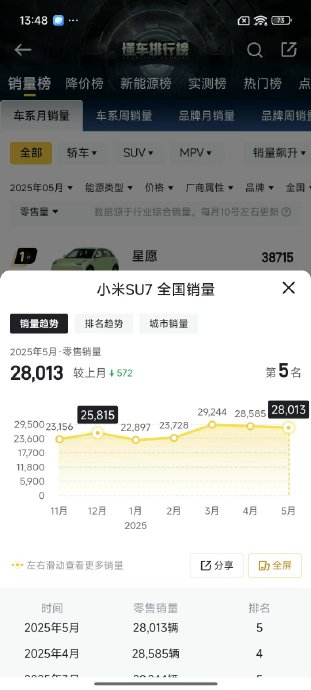 銷量還是一如既往的夸張,五月交付量干到28013臺,踩著的頭干到懂車帝銷量榜第五。最近三個月的銷量基本都穩定在28500臺的水pp上看,現在下單還得等40周,排隊排到明年,要不是產能跟不上,銷量估計還能往上沖不少。[并不簡單]