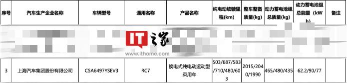 根據(jù)工信部披露的信息,飛凡 RC7 將提供三種不同容量的動力電池選項(xiàng),分別為 62.2 千瓦時(shí)、77 千瓦時(shí)和 90 千瓦時(shí),根據(jù)電池容量、配置車型以及動力版本不同,續(xù)航里程分別為 480 公里、503 公里、583 公里、603 公里、687 公里以及 710 公里。