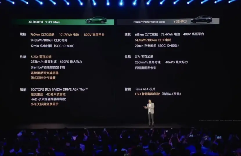 內部對小米YU7爆火的預測,也使得雷軍在定價上顯得更有底氣。相比去年3月小米SU7比Model 3足足便宜3萬元的起售價,昨晚發布的小米YU7,起售價25.35萬元只比Model Y便宜了1萬元。
