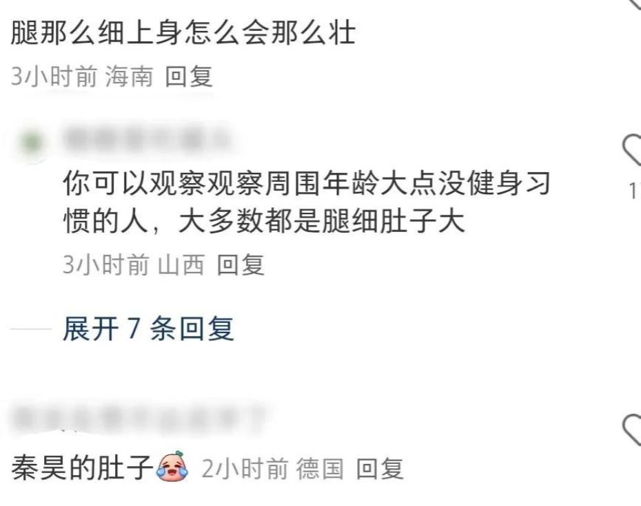 這次大家討論最多的還是秦昊的狀態。他留著長發,天熱頭發都塌了,肚子也鼓起來,短褲配淺口鞋的打扮,和以前在電視里的樣子完全不一樣。有人覺得他造型奇怪,還想起他之前分享過的減肥方法。
