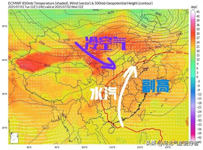此次副高的北上西伸帶來了十分豐沛的水汽,在西風帶冷空氣的作用下,迅速抬升,形成強降雨。