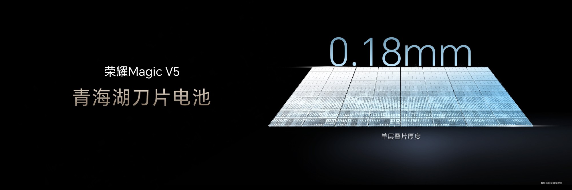 材料技術創新是關鍵。榮耀深入探索材料技術,突破電池硅含量極限,打破纖薄、大容量、高可靠性不可能三角。新一代青海湖電池行業首發 15%硅含量,集大容量、耐低溫、長壽命于一體;最新一代青海湖刀片電池單膜片厚度僅 0.18mm,硅含量高達 25%,能量密度達行業最高的 901Wh/L,擁有 6100mAh 大容量,創折疊屏電池新紀錄。