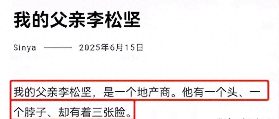 去北京上學,也許哪個首長的女兒就看上你了!”當李新野以美國計算機奧賽全球第一的身份手握麻省理工錄取通知時,地產大亨父親李松堅這句升學指導,徹底掐滅了他的留學夢。十年后,這位清華姚班精英在父親節當天,用一篇《我的父親李松堅》將家族黑幕炸上熱搜。