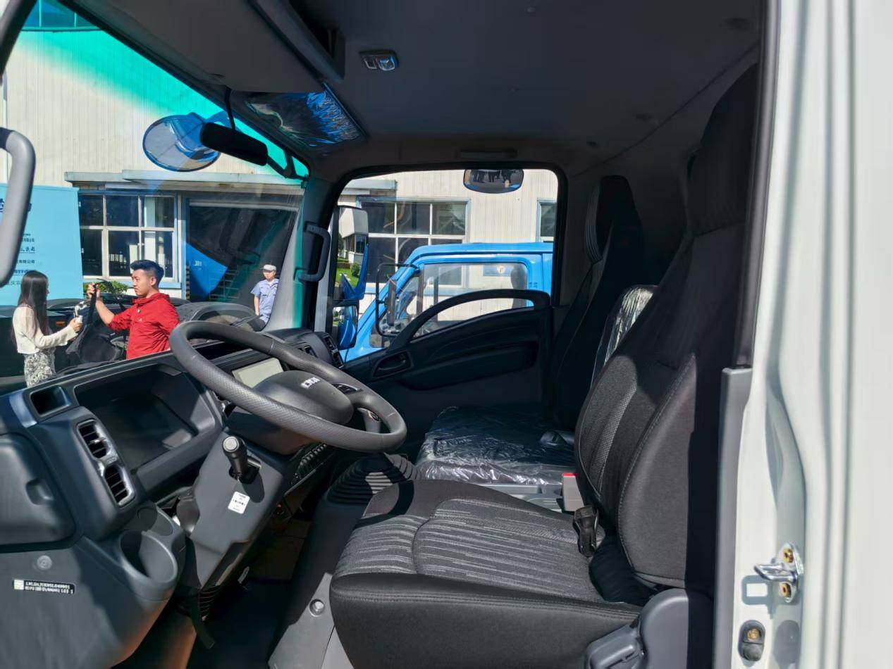 接下來(lái)的兩款產(chǎn)品同樣非常重磅,首先是純電小卡EV100鈴巨力,從名字上就能感覺到這款車型小身材大能量的體現(xiàn),該車擁有與輕卡相同的承載能力和貨箱容積,承載可達(dá)5~6噸,貨箱提升至15方,搭配高效電驅(qū)橋系統(tǒng),電池可選擇53度電和77度電,是城配運(yùn)輸?shù)暮眠x擇。
