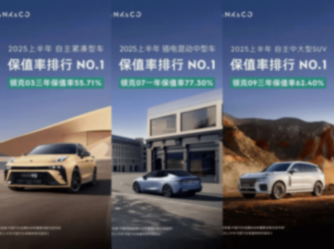 領(lǐng)克150萬輛的含金量,首先體現(xiàn)在價格上。2025年5月,領(lǐng)克品牌加權(quán)均價達(dá)18.9萬元,超越眾多傳統(tǒng)合資品牌。而保值率是檢驗品牌價值的試金石,根據(jù)《2025上半年中國汽車保值率研究報告》,領(lǐng)克品牌三年保值率達(dá)54.58%,9款車型躋身細(xì)分榜單前十,其中、07、09分別在各自細(xì)分市場登頂保值率冠軍。