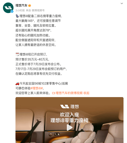 7月17日,理想汽車首款純電SUV i8正式開(kāi)啟預(yù)售,預(yù)售價(jià)35-40萬(wàn)元,正式售價(jià)將在7月29日發(fā)布會(huì)重磅揭曉。