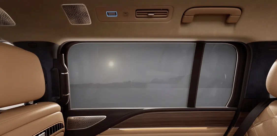 仰望 U8L 鼎世版搭載了丹拿鉑金證據系列 Hi-End 級 32 揚聲器系統,功率可達 2040W,支持 7.1.4 杜比全景聲。二排車窗、二排角窗、三排車窗都支持 11 檔遮光效果調節,甚至可以結合車輛定位、陽光照射角、座椅角度以及車輛周圍行人多少等自動變化 PDLC 的霧度和暗度。