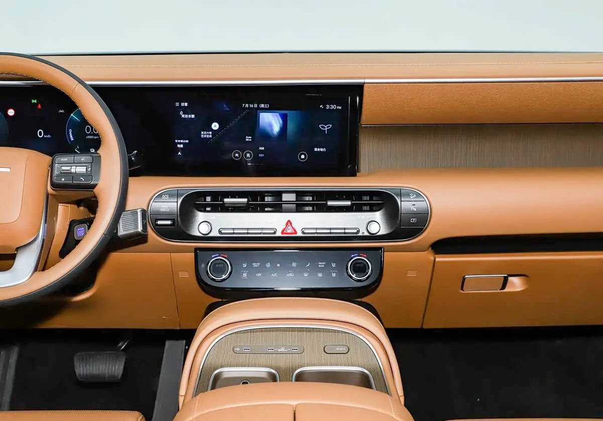 內飾方面,新車配備了內嵌式雙聯屏設計,同時搭配雙色三輻式多功能方向盤以及懷擋電子換擋機構。中控臺配備了實體功能按鍵以及觸摸式的空調控制面板,以及手機無線充電和雙杯架設計。座椅布局方面,海外版的全新帕里斯帝除了常規的2+2+3布局、2+3+3布局,還提供前排3座椅的3+3+3空間布局,最多可乘坐9人。國內版本將采用2+2+3的七座布局。