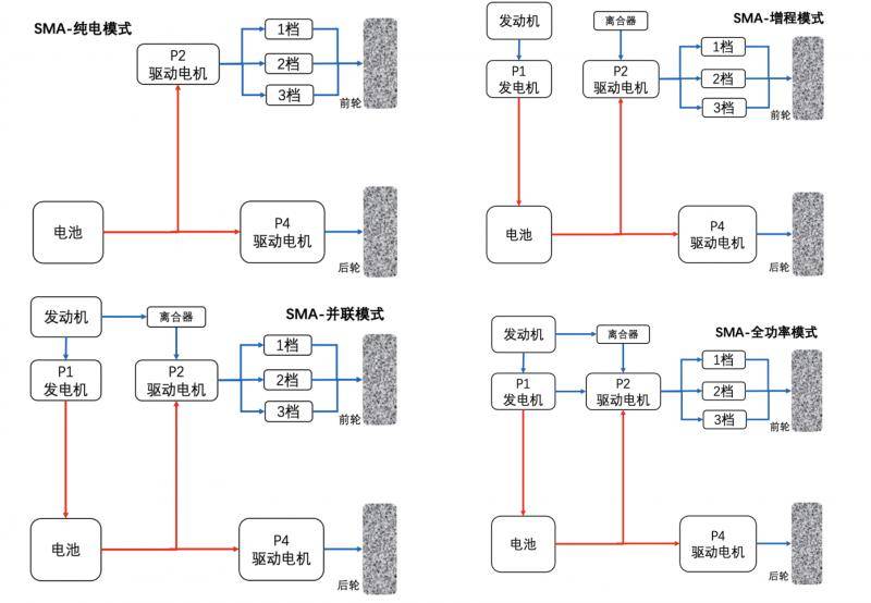 這三個(gè)電機(jī)有著明確的分工,在不同模式下各司其職。