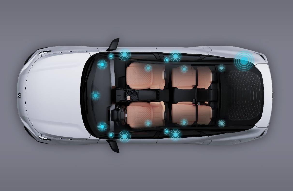 年輕用戶對座艙影音娛樂的需求越來越高,第三代UNI-V便越級搭載同級獨有的18個揚聲器和杜比全景聲,由長安汽車聲學專家團隊與杜比共同組建聯合實驗室調教。結合首發搭載騰訊參與孵化的AI座艙品牌TTi 旗下Sound AI音效算法、真7.14全景環繞聲、六大音效模式,第三代UNI-V讓每個座位都能享受“聲臨其境”的沉浸式聽覺盛宴。