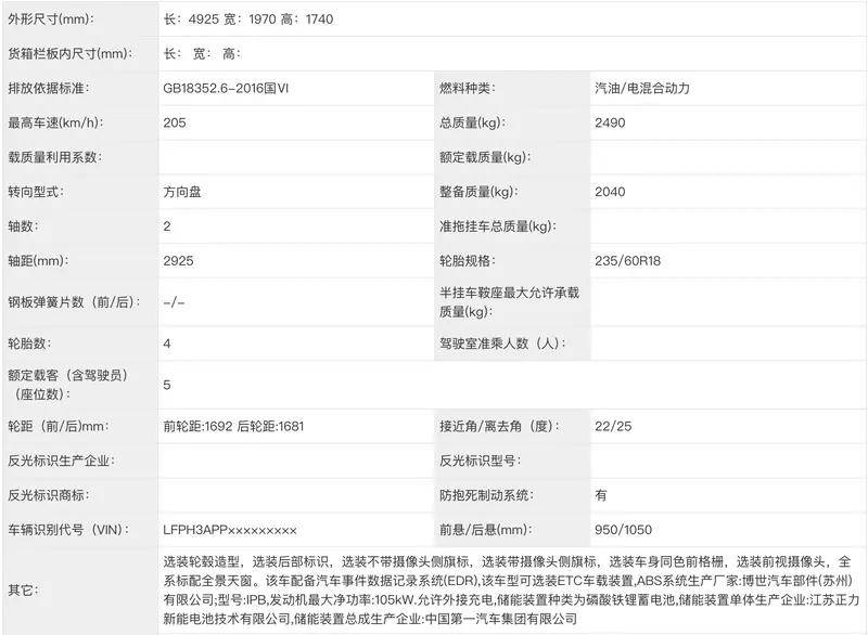 日前,我們在工信部看到了一汽紅旗HS6申報圖。新車搭載搭1.5T插混動力 ,可選裝車身同色前格柵,以及“今朝06”尾部標識。