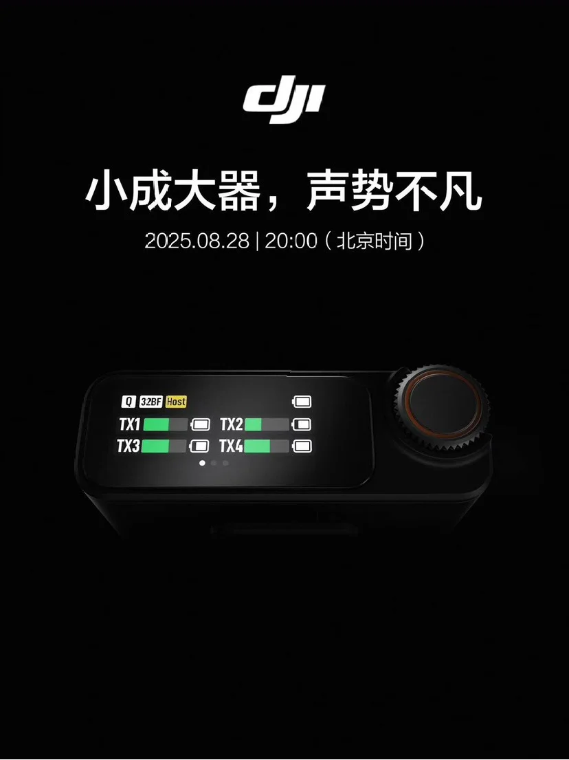 大疆麥克風新品官宣8月28日晚發(fā)布,支持一拖四