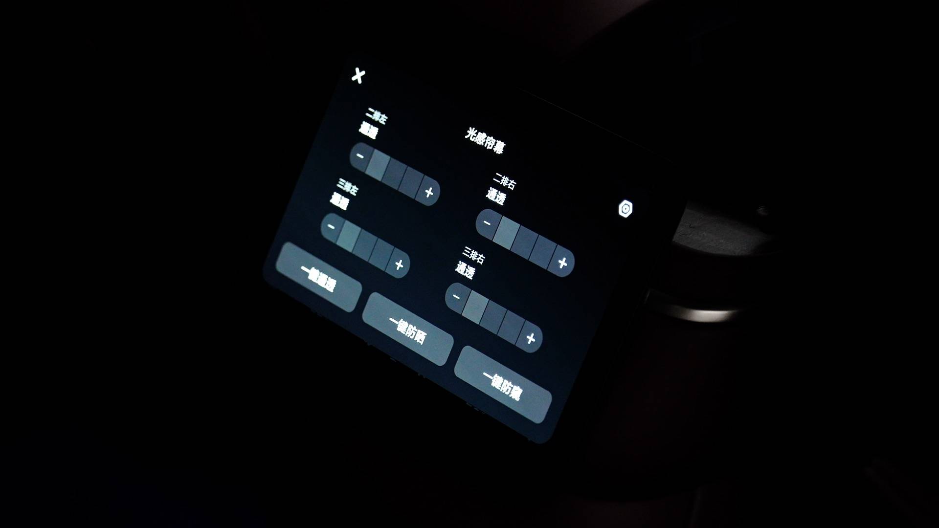 但這不影響蔚來在全新ES8上拓展側窗面積,我肉眼看起來它在水切線之上的占比接近1/3,已經有點MPV的觀感,同時也給乘員帶來更好的側向視野,其中第三排角窗透光面積0.16平米。蔚來還把天窗的電致變色可調光用到全新ES8的側窗,通過隱私/隔熱/通透三擋調節,省去了車主貼膜的費用,紅外線、紫外線也都做到99%隔絕——不過我實測發現,通透度的變化還是比較慢,需要消費者使用前降低預期。