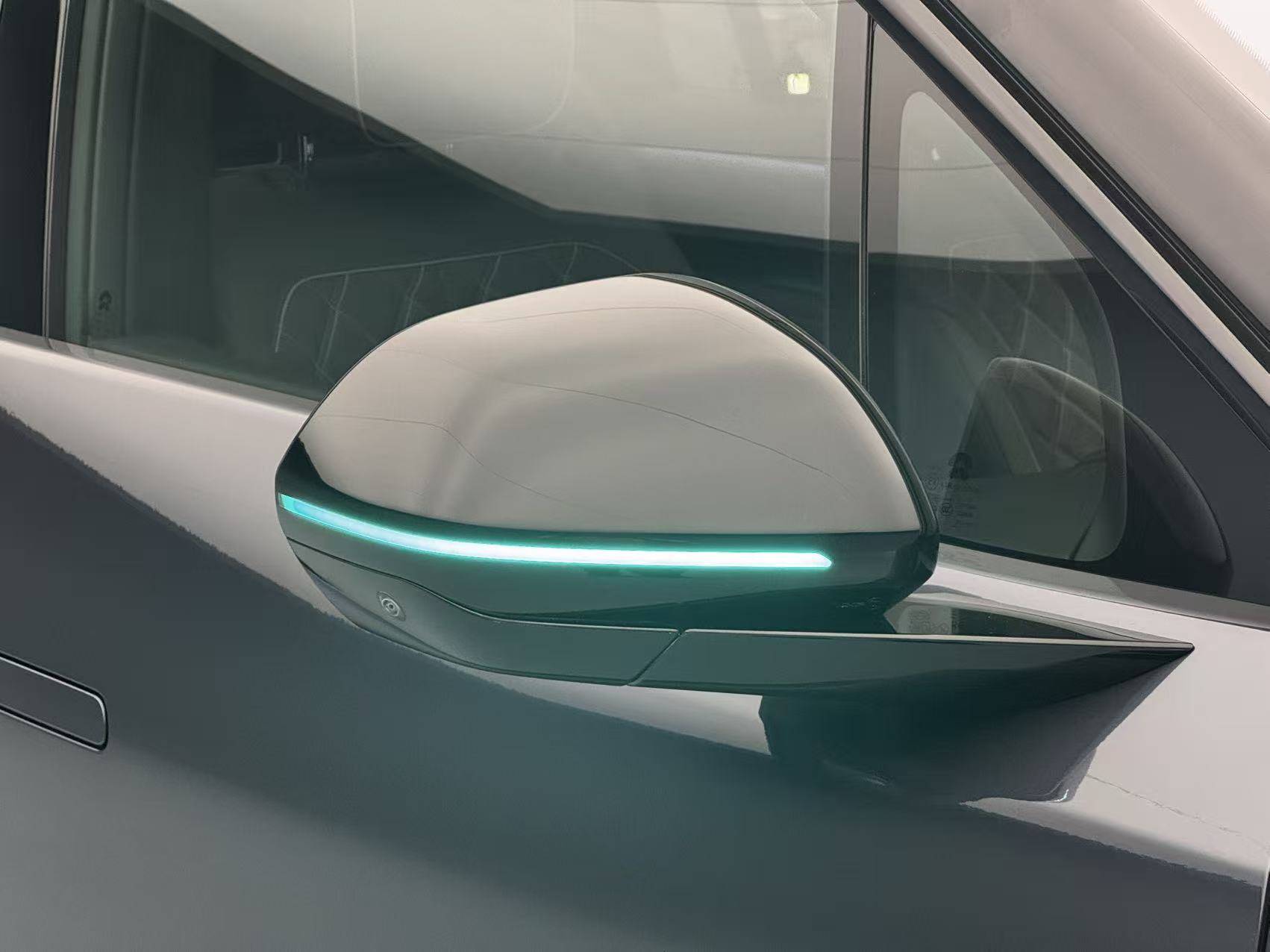 全新ES8的側面還有一些小變化,比如神磯芯片驅動的31個智駕硬件里,多了前翼子板的廣角激光雷達,后視鏡也有AD小藍燈。