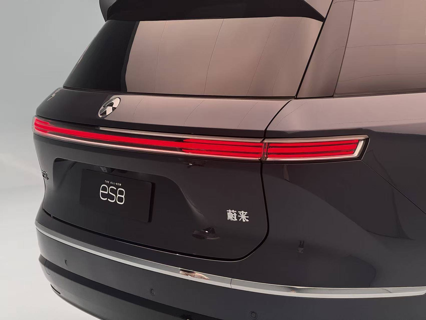 相較之下,全新ES8尾部是比較中庸的一面,型面簡約,屬于不犯錯的沉穩,環繞車身的銀色飾條得到保留,也更寬了。