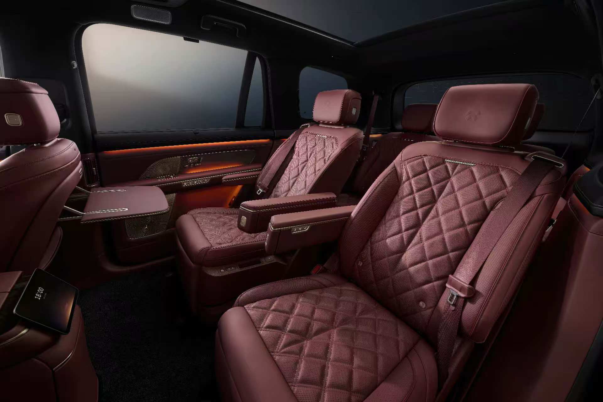 全新ES8“老錢”的地方還很多,比如車內用了52平米全包軟裝,相當于高標準的精裝房,其中“山川疊韻”刺繡的Nappa皮質座椅就很吸睛。雖然也和ET9一樣是菱格紋路,但蔚來在SUV上選用了更深邃的單縫線,縱向特征線減少到一根,同時靠背側翼也更收緊,少了行政的嚴肅,多了商務的豪氣。
