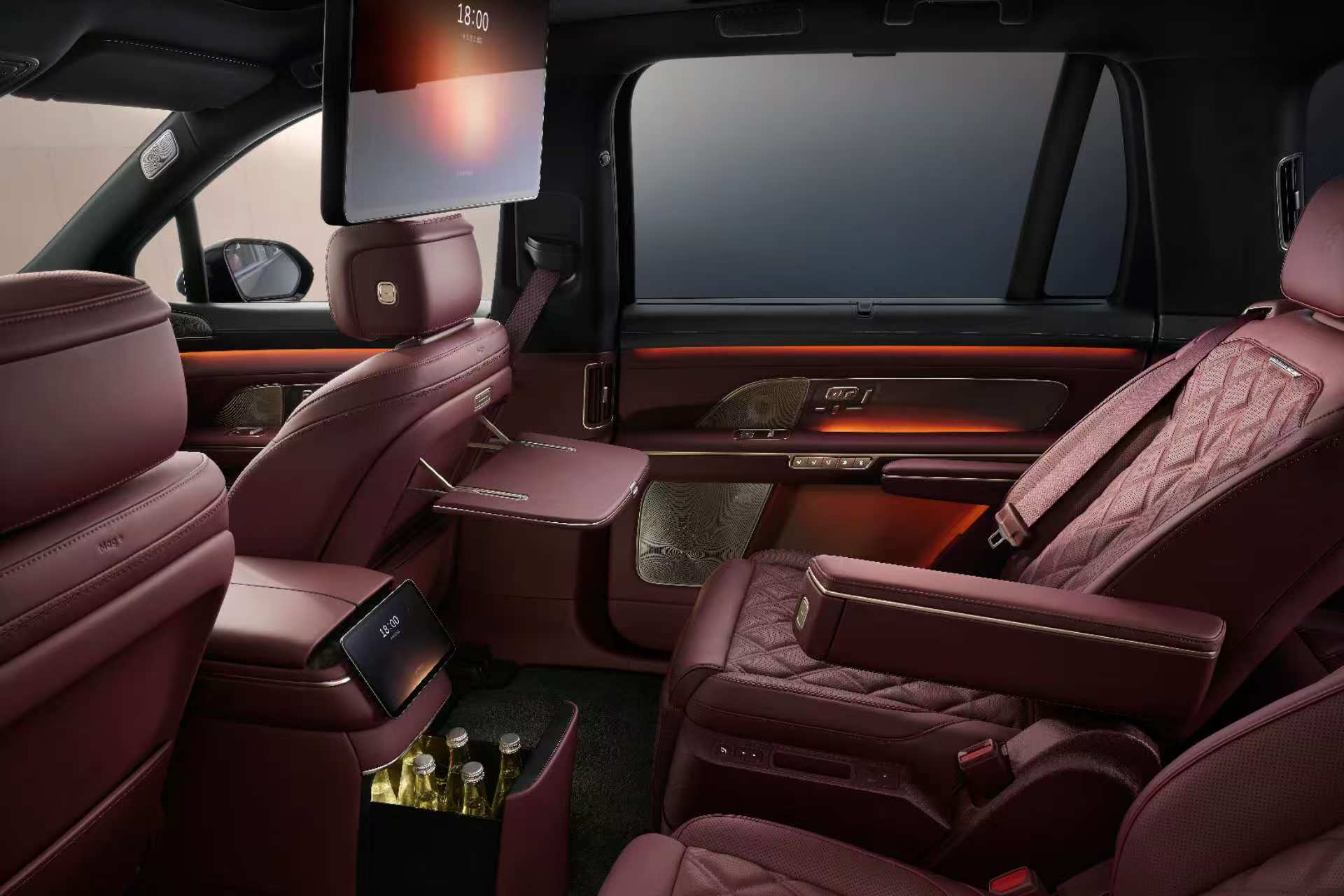 蔚來還給全新ES8第二排提供了帶LED光源的化妝鏡,據說是有一些美顏效果。不過這應該不是核心賣點,最重要的還是“冰箱、彩電”,這次蔚來拿出了8.8L冷暖冰箱,高度可以豎向放進“巴黎水”,但農夫山泉就只能平放——看來全新ES8的消費群體挑水的口味也頗高。蔚來的冰箱不算領先,但21.4英寸后排屏在主流車企選用LCD時,全新ES8用上了車規級Mini LED屏幕,還是比較厚道,如果能率先把量產OLED屏幕上車,應該會更有話題性。